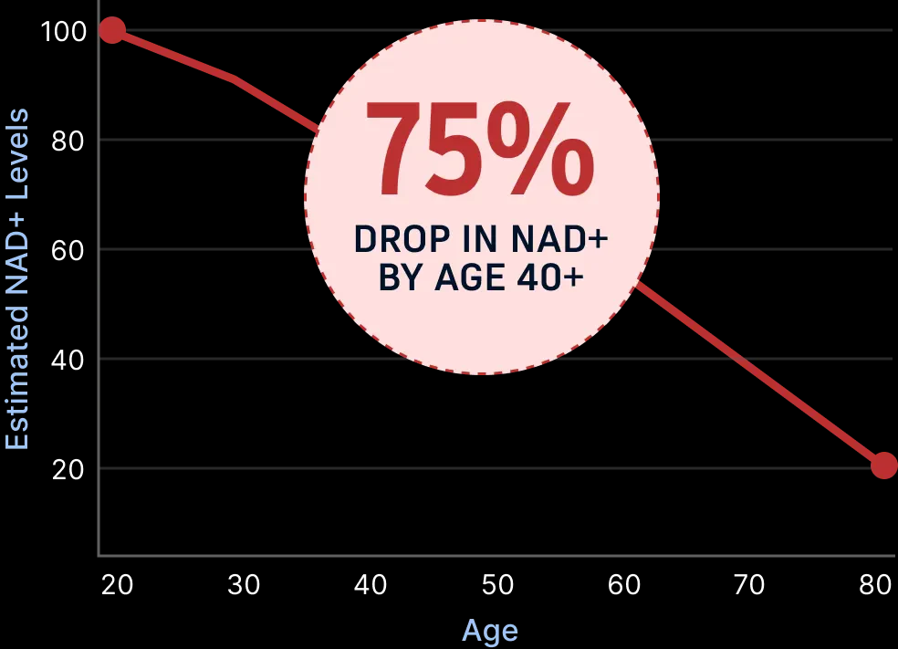 the cellular processes that keep you energized, focused, and resilient. Lower NAD+ leads to weaker circulation, slower recovery, reduced mental clarity, and a drop in daily performance.